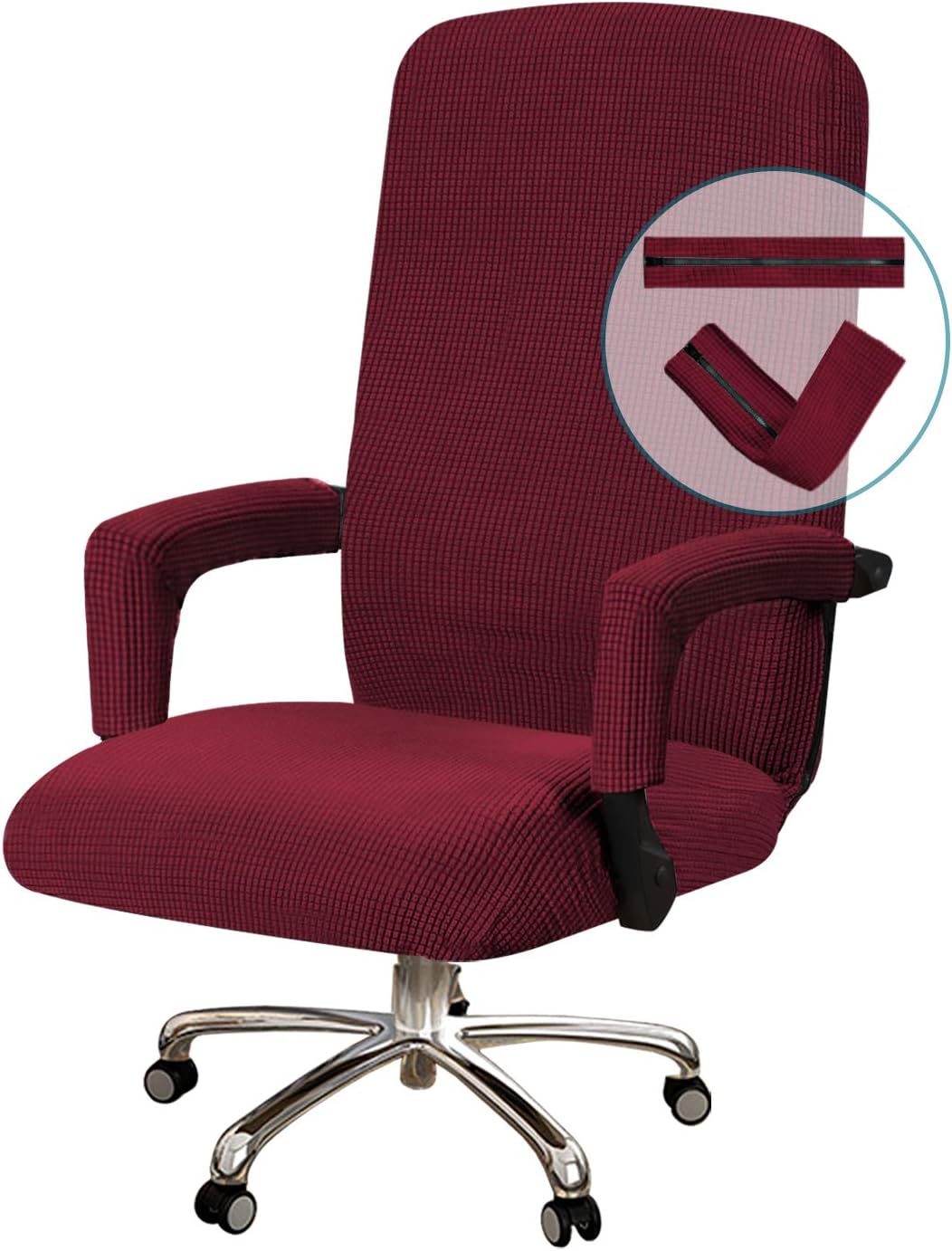 - EASY INSTALLATION WITH ZIPPER: The high-quality office chair cover is ultra comfortable and highly fit, zippers are designed on both chair back sides for facilitate fixation and using. Morever, bonus with 2 matching armrest covers could helping you relax your arms and reduce elbow pain
